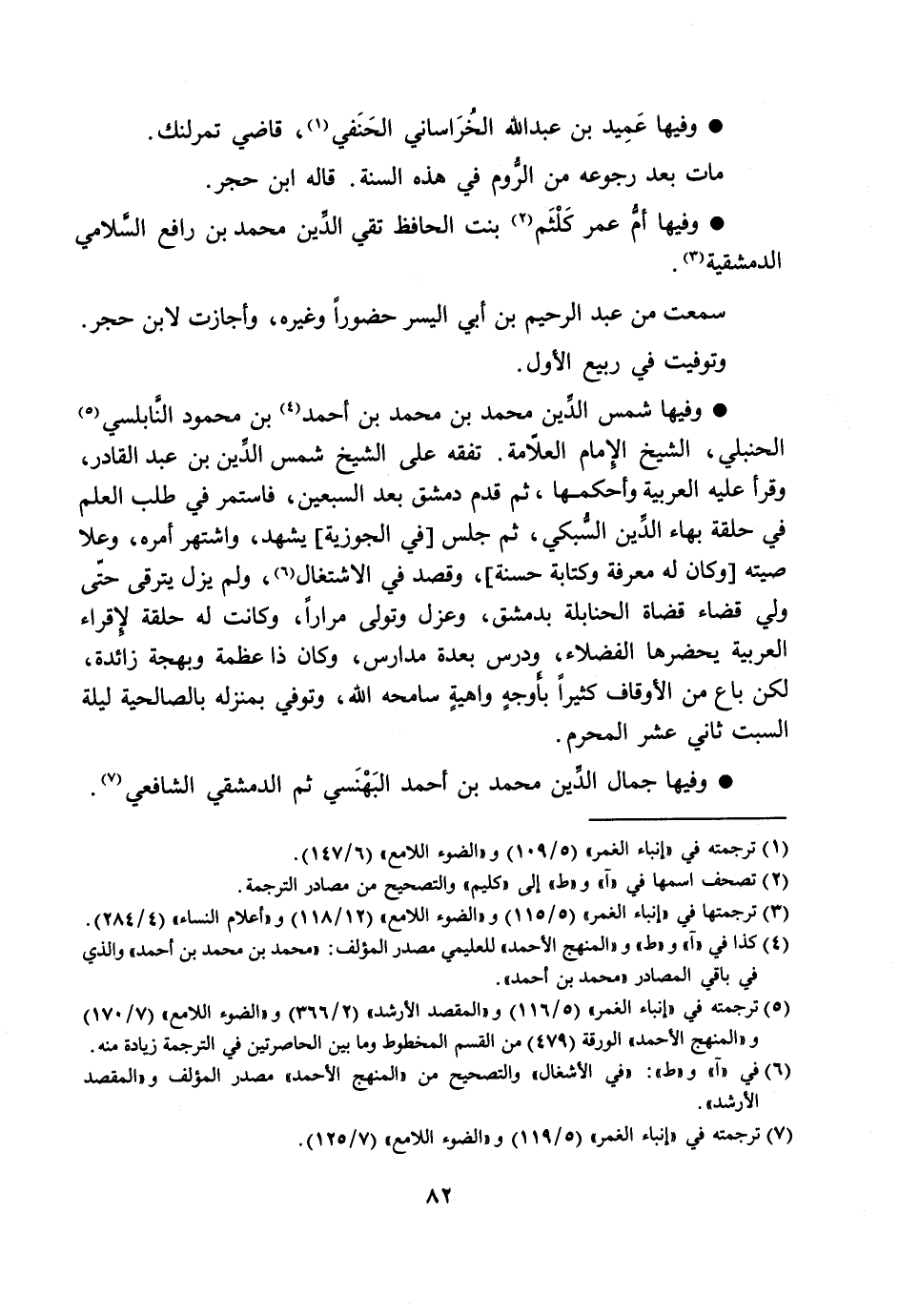 [5] ترجمته في «إنباء الغمر» (5/ 116) و «المقصد الأرشد» (2/ 366) و «الضوء اللامع» (7/ 170) و «المنهج الأحمة» الورقة (479) من القسم المخطوط وما بين الحاصرتين في الترجمة زيادة منه.