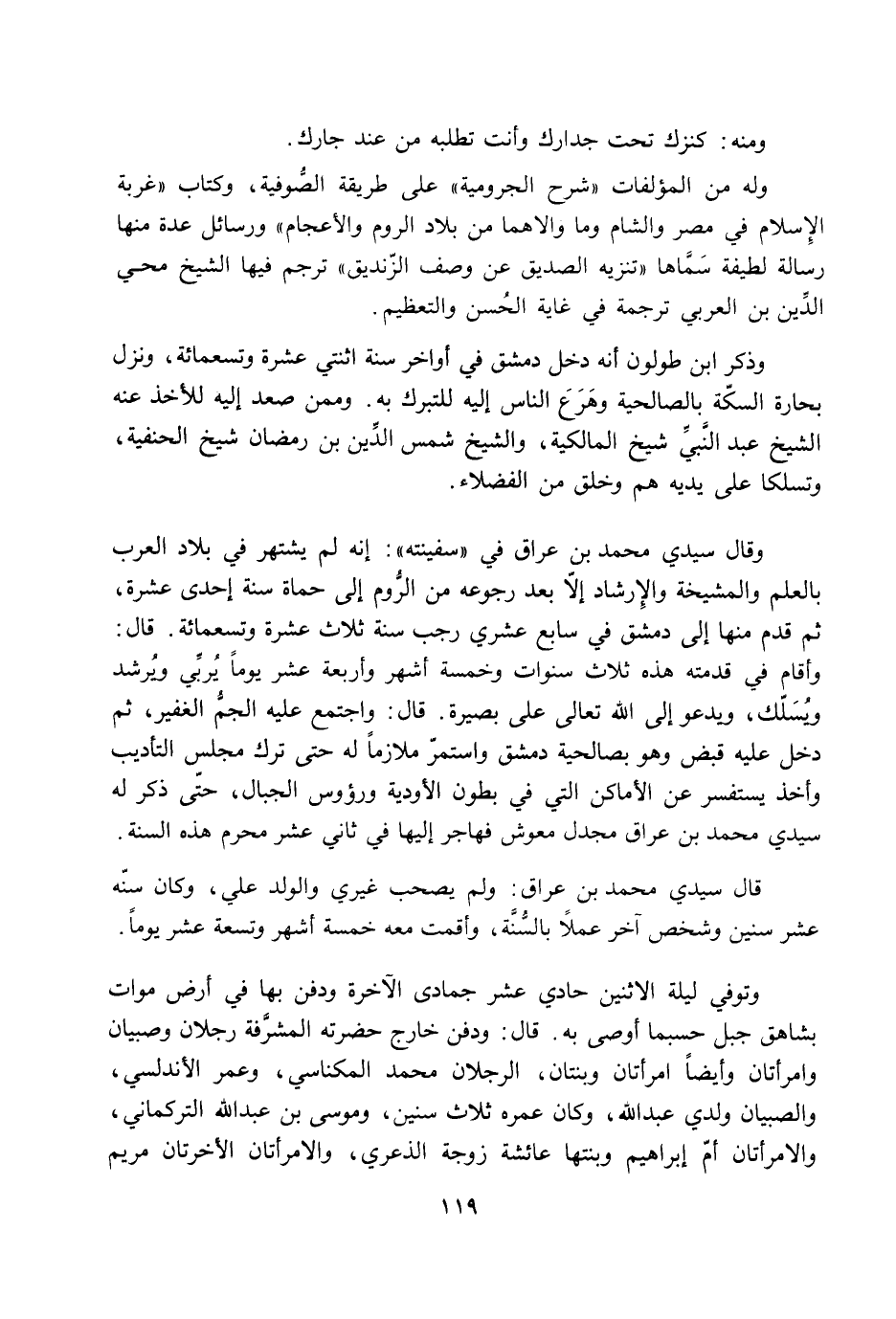 قال سيدي محمد بن عراق: ولم يصحب غيري والولد علي، وكان سنّه عشر سنين وشخص آخر عملا بالسّنّة، وأقمت معه خمسة أشهر وتسعة عشر يوما.