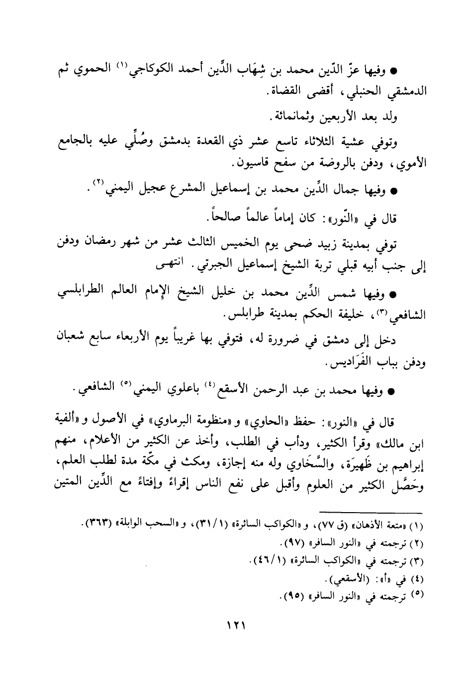 [1] «متعة الأذهان» (ق 77) ، و «الكواكب السائرة» (1/ 31) ، و «السحب الوابلة» (363) .
