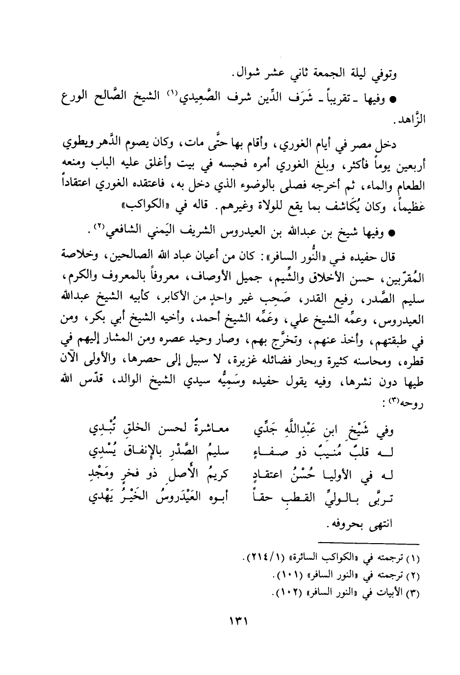 وفيها شيخ بن عبد الله بن العيدروس الشريف اليمني الشافعي [2] .