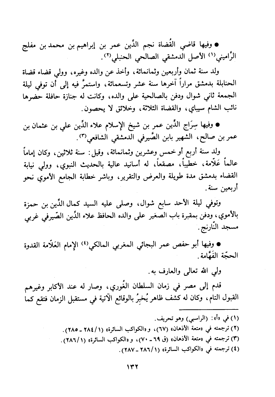 وفيها قاضي القضاة نجم الدّين عمر بن إبراهيم بن محمد بن مفلج الرّاميني [1] الأصل الدمشقي الصالحي الحنبلي [2] .