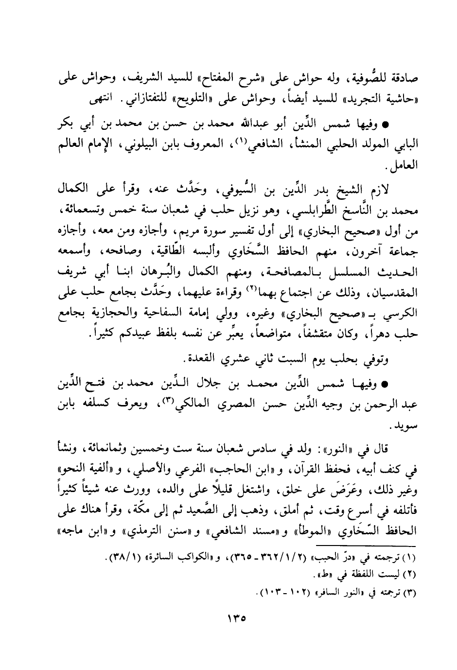 صادقة للصّوفية، وله حواش على «شرح المفتاح» للسيد الشريف، وحواش على «حاشية التجريد» للسيد أيضا، وحواش على «التلويح» للتفتازاني. انتهى وفيها شمس الدّين أبو عبد الله محمد بن حسن بن محمد بن أبي بكر البابي المولد الحلبي المنشأ، الشافعي [1] ، المعروف بابن البيلوني، الإمام العالم العامل.