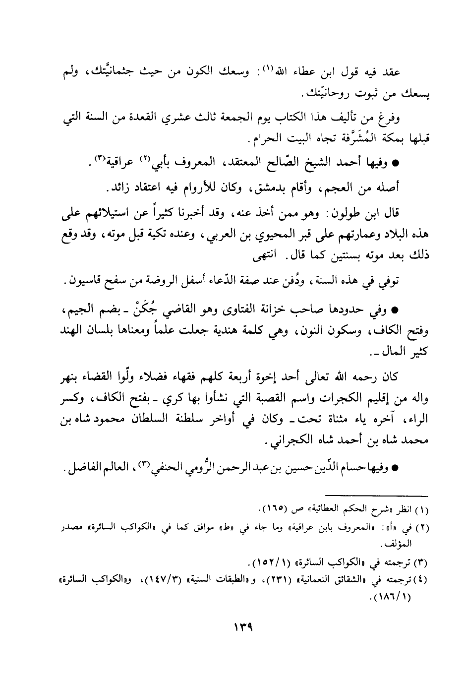 [2] في «أ» : «المعروف بابن عراقية» وما جاء في «ط» موافق كما في «الكواكب السائرة» مصدر المؤلف.