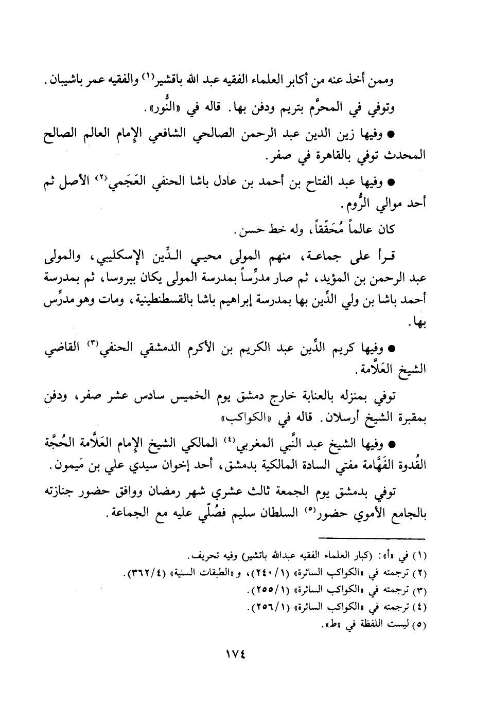 وفيها عبد الفتاح بن أحمد بن عادل باشا الحنفي العجمي [2] الأصل ثم أحد موالي الرّوم.