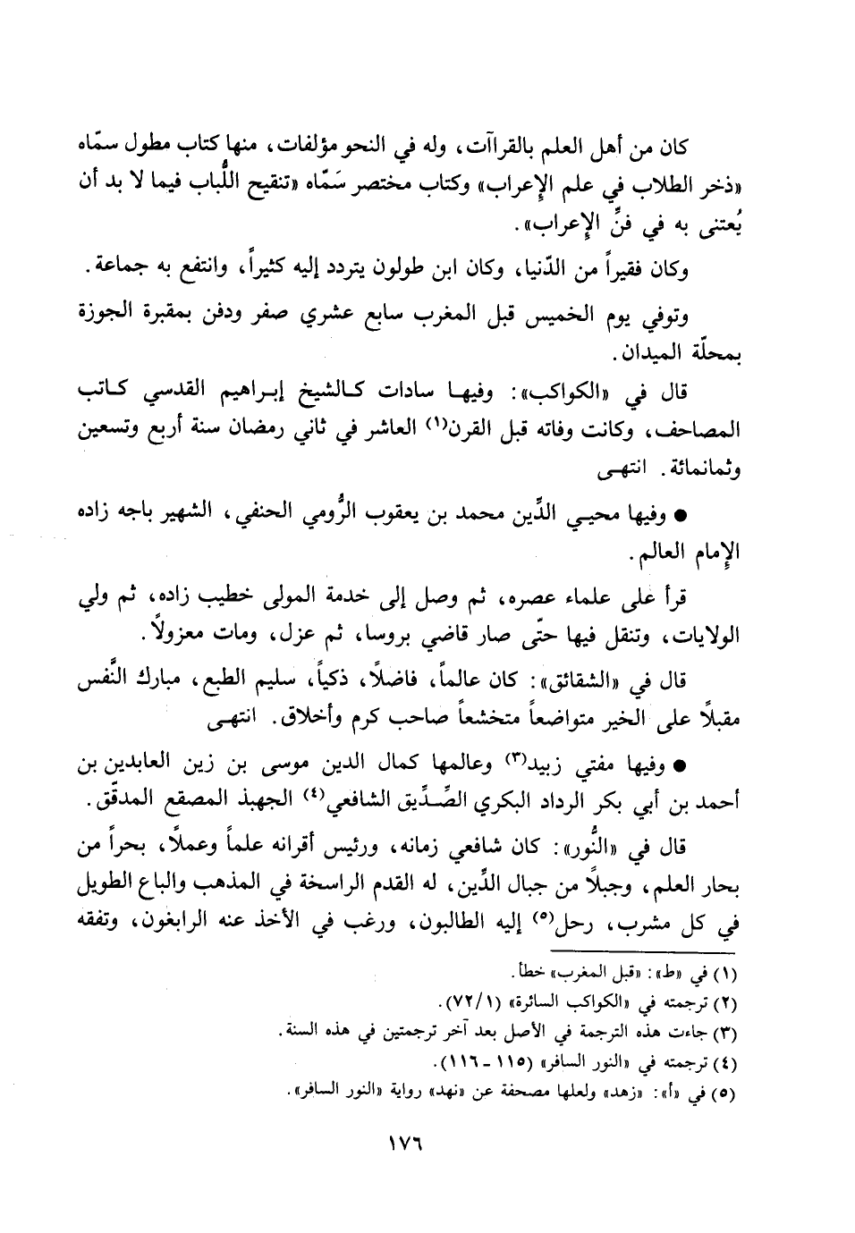 قال في «الشقائق» : كان عالما، فاضلا، ذكيا، سليم الطبع، مبارك النّفس مقبلا على الخير متواضعا متخشعا صاحب كرم وأخلاق. انتهى وفيها مفتي زبيد [3] وعالمها كمال الدين موسى بن زين العابدين بن أحمد بن أبي بكر الرداد البكري الصّدّيق الشافعي [4] الجهبذ المصقع المدقّق.