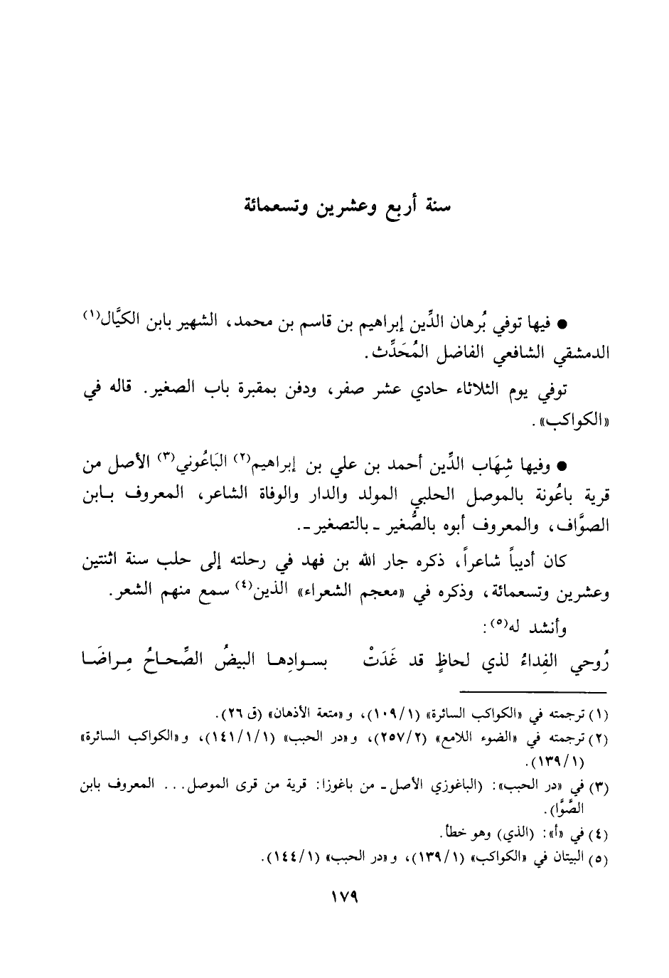[3] في «در الحبب» : (الباغوزي الأصل- من باغوزا: قرية من قرى الموصل ... المعروف بابن الصّوّا) .