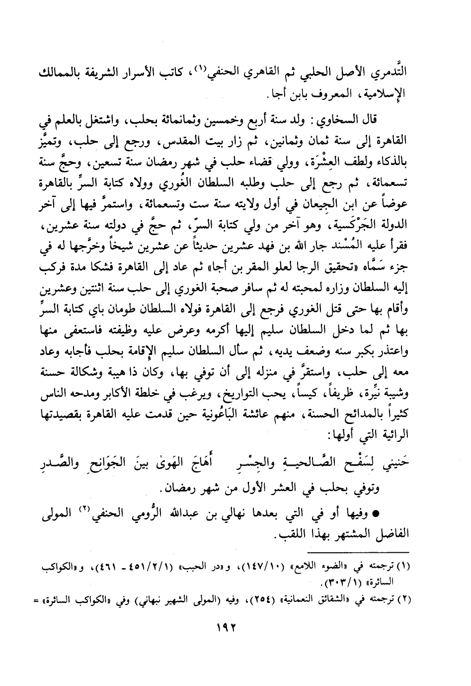 [2] ترجمته في «الشقائق النعمانية» (254) ، وفيه (المولى الشهير نبهاني) وفي «الكواكب السائرة»