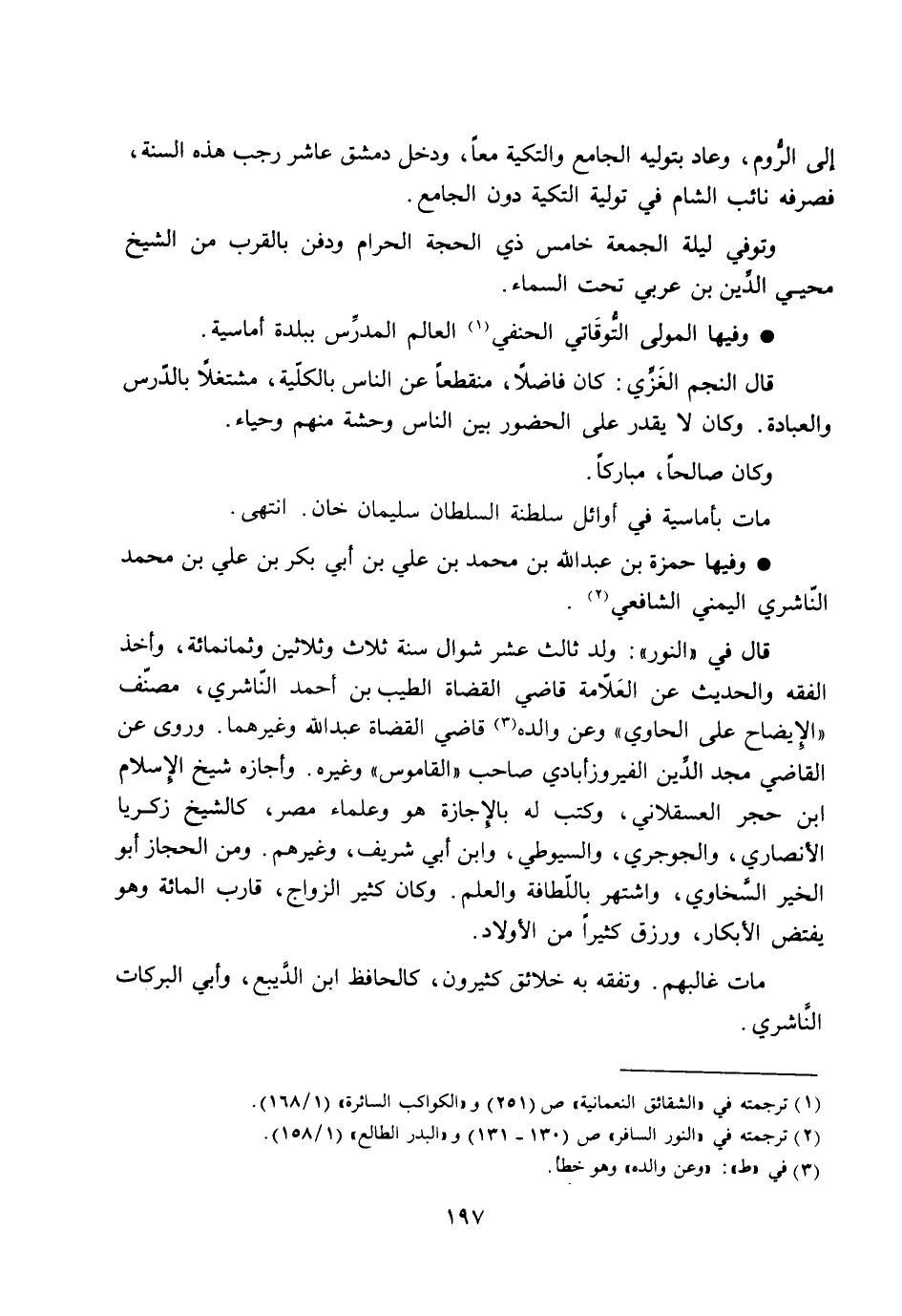 وفيها حمزة بن عبد الله بن محمد بن علي بن أبي بكر بن علي بن محمد النّاشري اليمني الشافعي [2] .