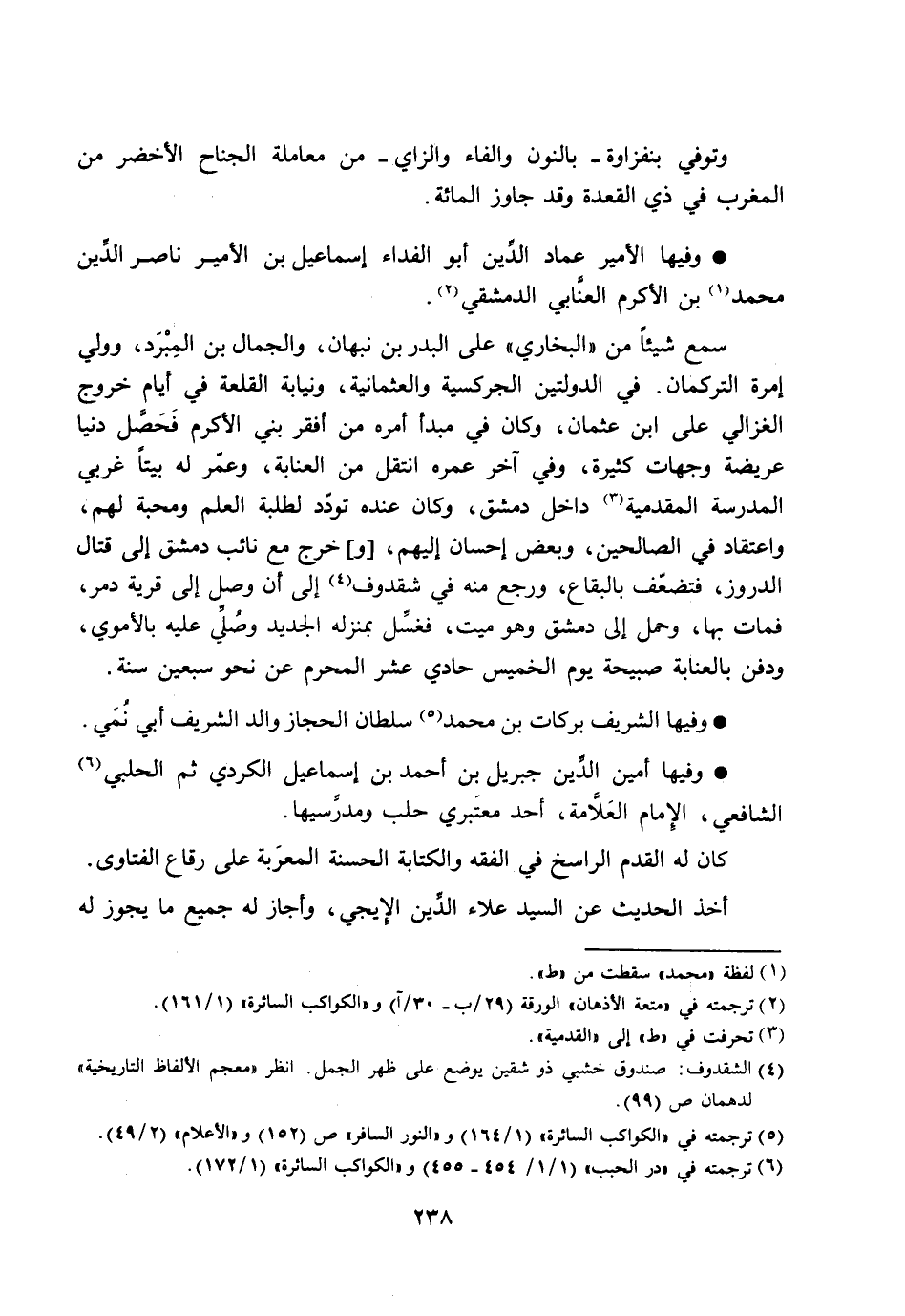 وفيها الأمير عماد الدّين أبو الفداء إسماعيل بن الأمير ناصر الدّين محمد [1] بن الأكرم العنّابي الدمشقي [2] .