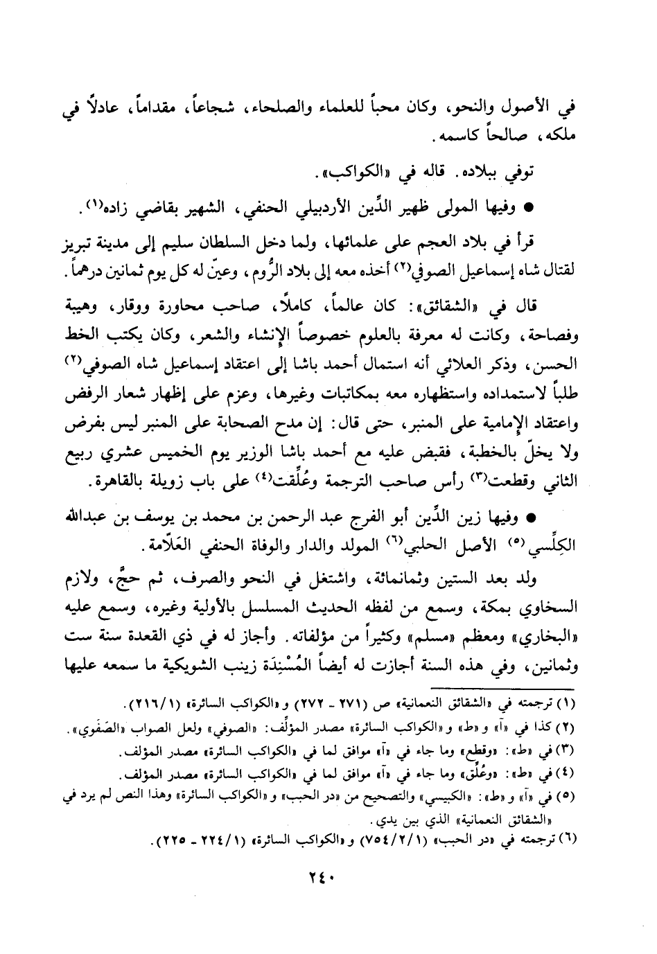 [5] في «آ» و «ط» : «الكبيسي» والتصحيح من «در الحبب» و «الكواكب السائرة» وهذا النص لم يرد في «الشقائق النعمانية» الذي بين يدي.