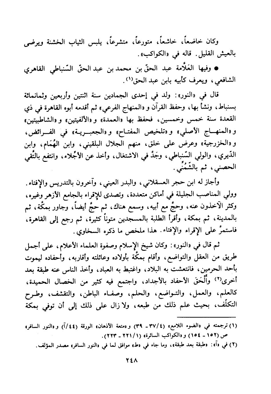 وفيها العلّامة عبد الحقّ بن محمد بن عبد الحقّ السّنباطي القاهري الشافعي، ويعرف كأبيه بابن عبد الحق [1] .