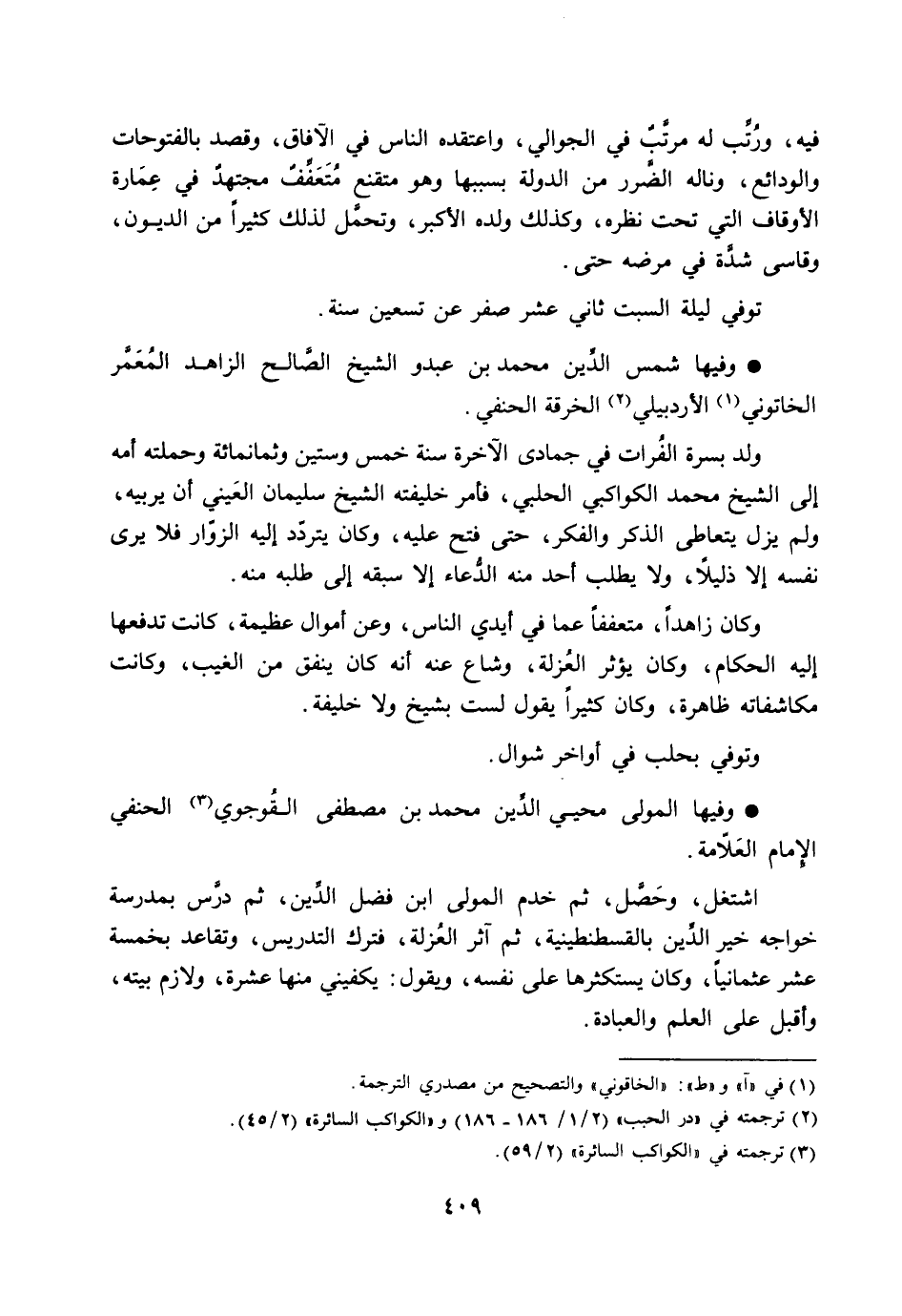 [2] ترجمته في «در الحبب» (2/ 1/ 186- 186) و «الكواكب السائرة» (2/ 45) .