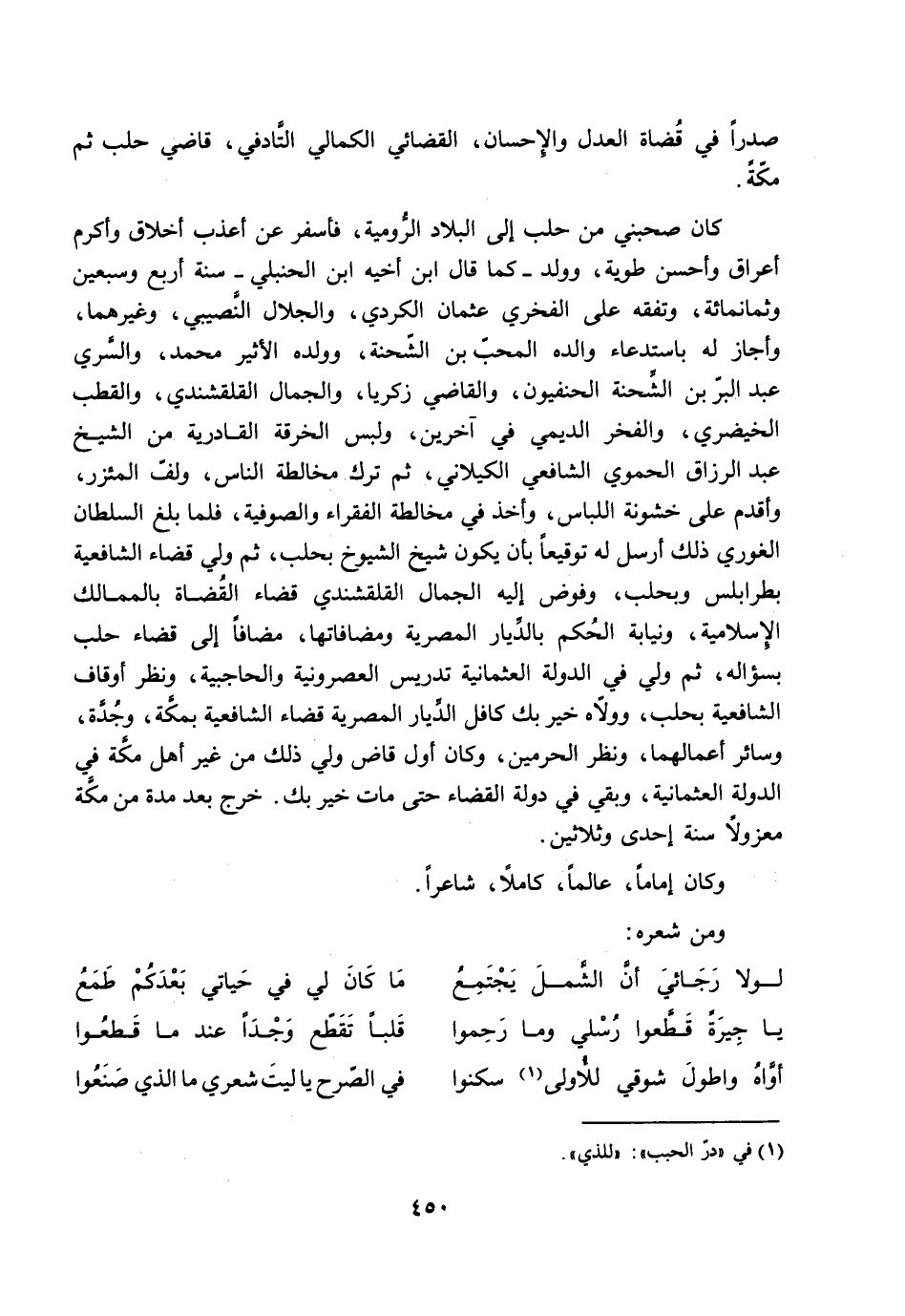 صدرا في قضاة العدل والإحسان، القضائي الكمالي التّادفي، قاضي حلب ثم مكّة.