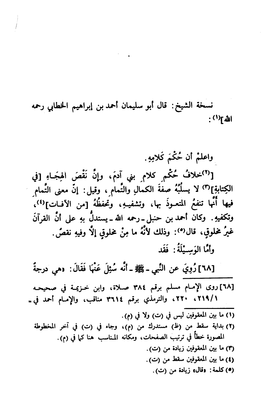 نسخة الشيخ: قال أبو سليمان أحمد بن إبراهيم الخطابي رحمه الله] (¬1):