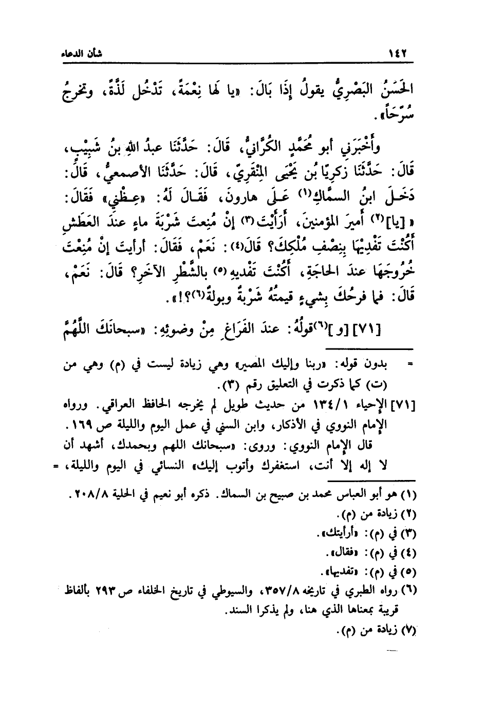 [71] [و] (¬7) قولُهُ: عندَ الفَراغ مِنْ وضوئهِ: "سبحانَكَ اللهم