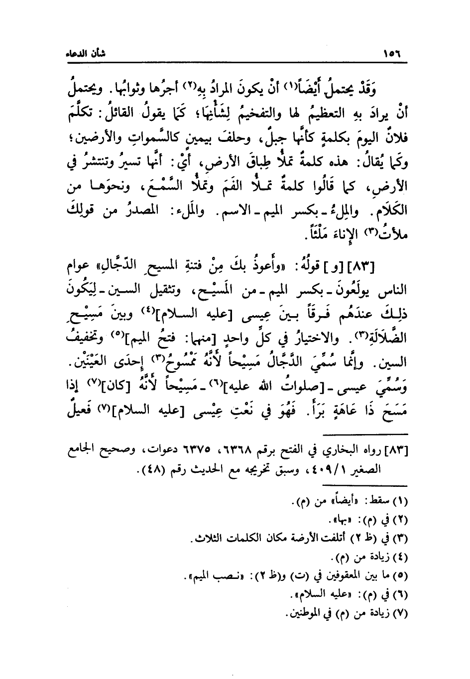 [83] رواه البخاري في الفتح برقم 6368، 6375 دعوات، وصحيح الجامع الصغير 1/ 409، وسبق تخريجه مع الحديث رقم (48).