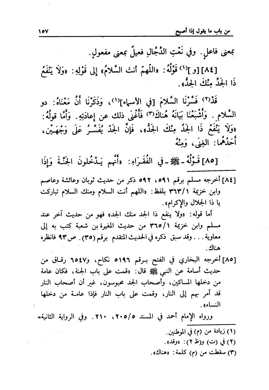 [84] [و] (¬1) قَوْلُهُ: "اللهم أنتَ السَّلامُ" إِلى قَوْلهِ: "وَلَا يَنْفَعُ ذَا الجَدِّ مِنْكَ الجدُّ".