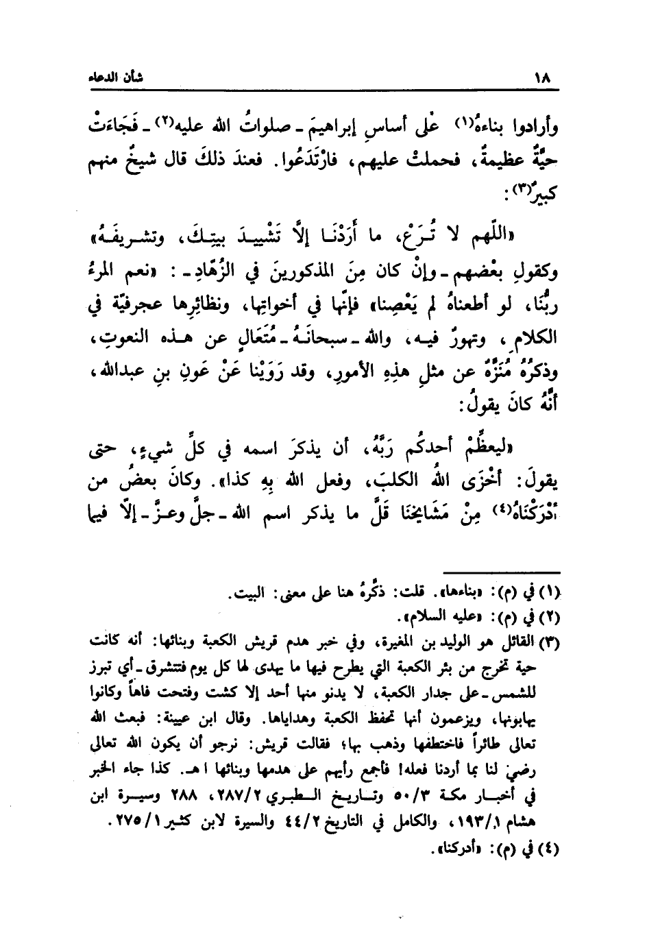 "اللهم لا تُرَعْ، ما أرَدنَا إلا تَشْييدَ بيتِكَ، وتشريفَهُ"