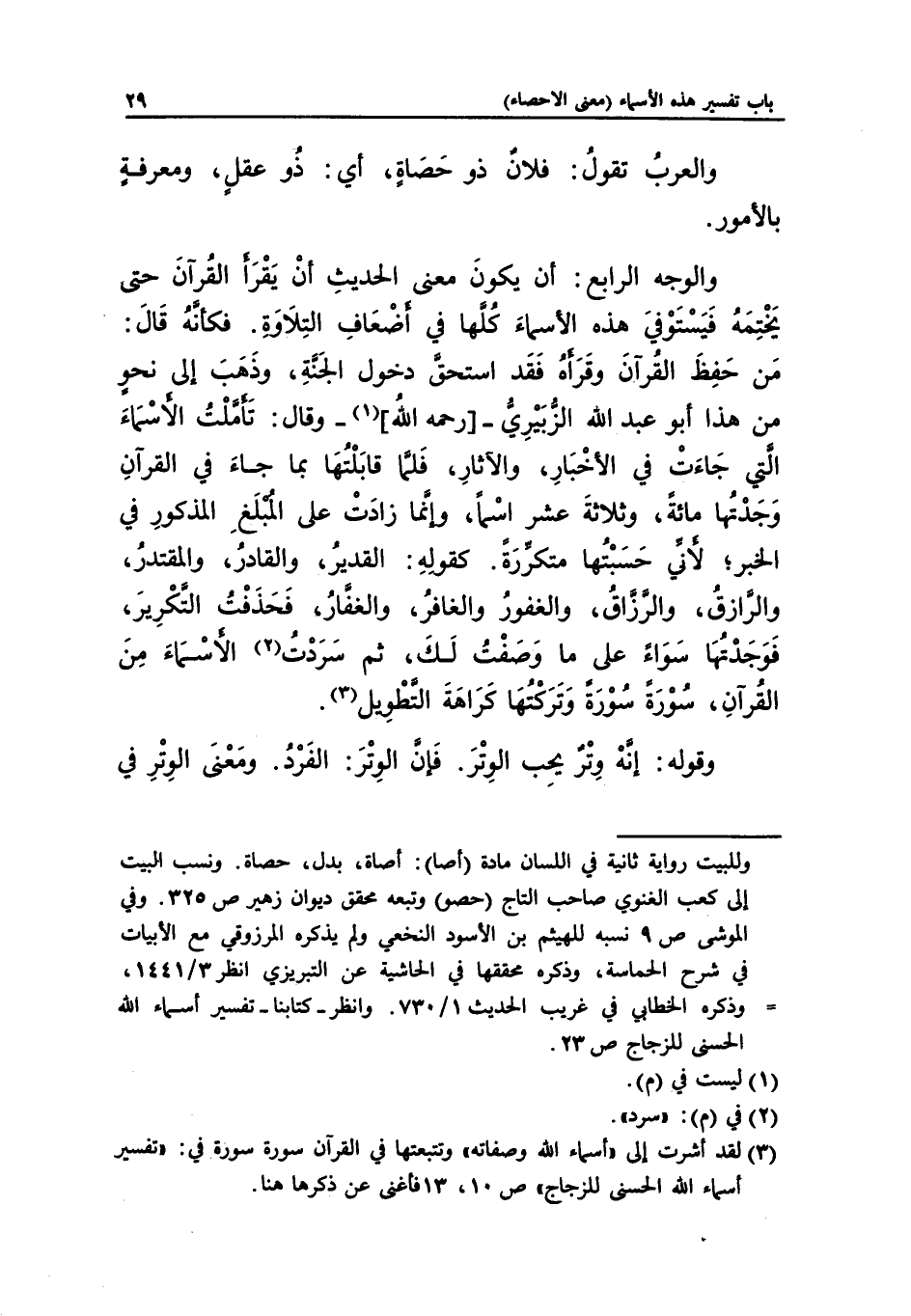 (¬3) لقد أشرت إلى "أسماء الله وصفاته" وتتبعتها في القرآن سورة سورة في: "تفسير أسماء الله الحسنى للزجاج" ص 10، 13 فأغنى عن ذكرها هنا.