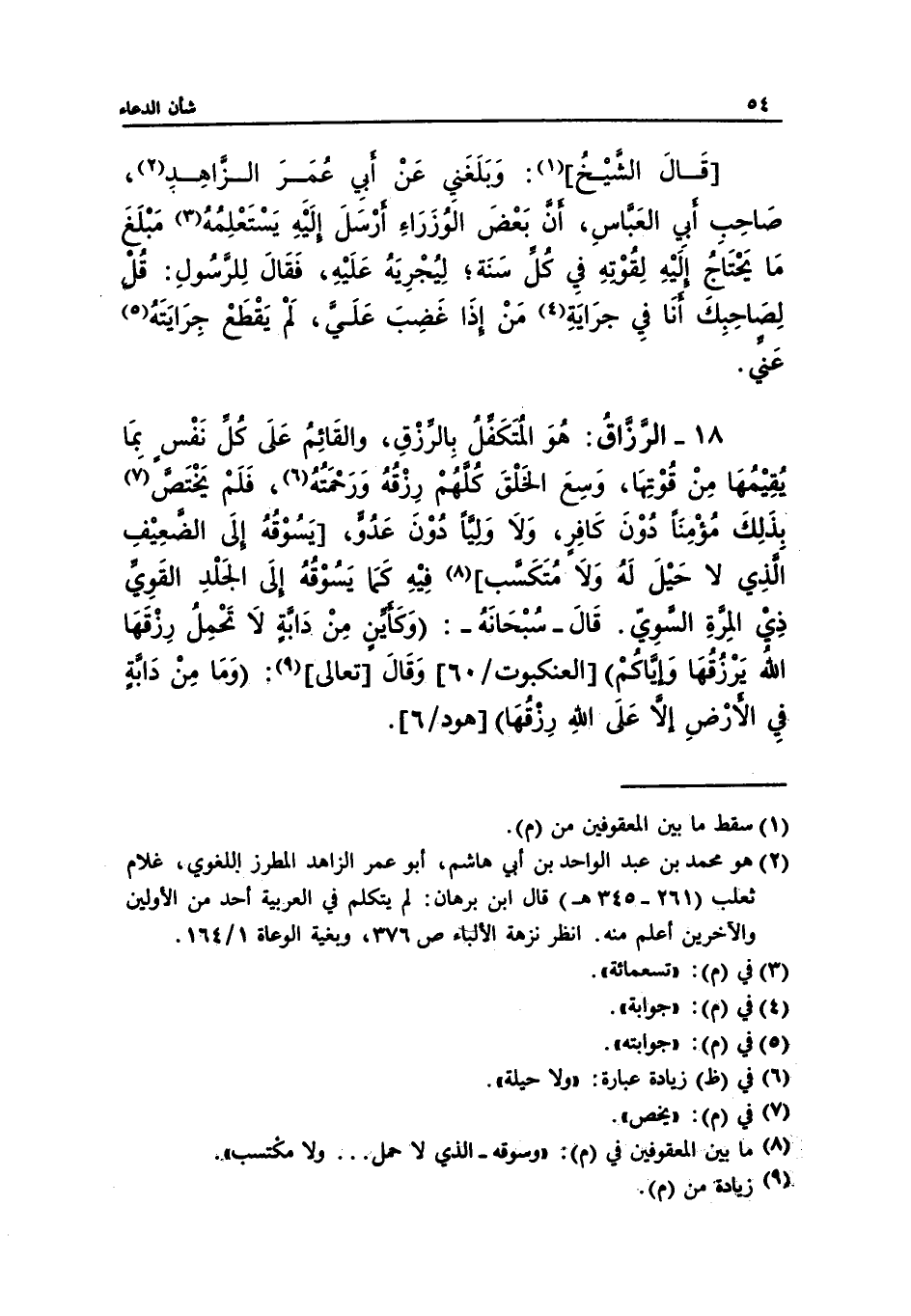 (¬2) هو محمد بن عبد الواحد بن أبي هاشم، أبو عمر الزاهد المطرز اللغوي، كلام ثعلب (261 - 345 هـ) قال ابن برهان: لم يتكلم في العربية أحد من الأولين والآخرين أعلم منه. انظر نزهة الألباء ص 376، وبغية الوعاة 1/ 164.