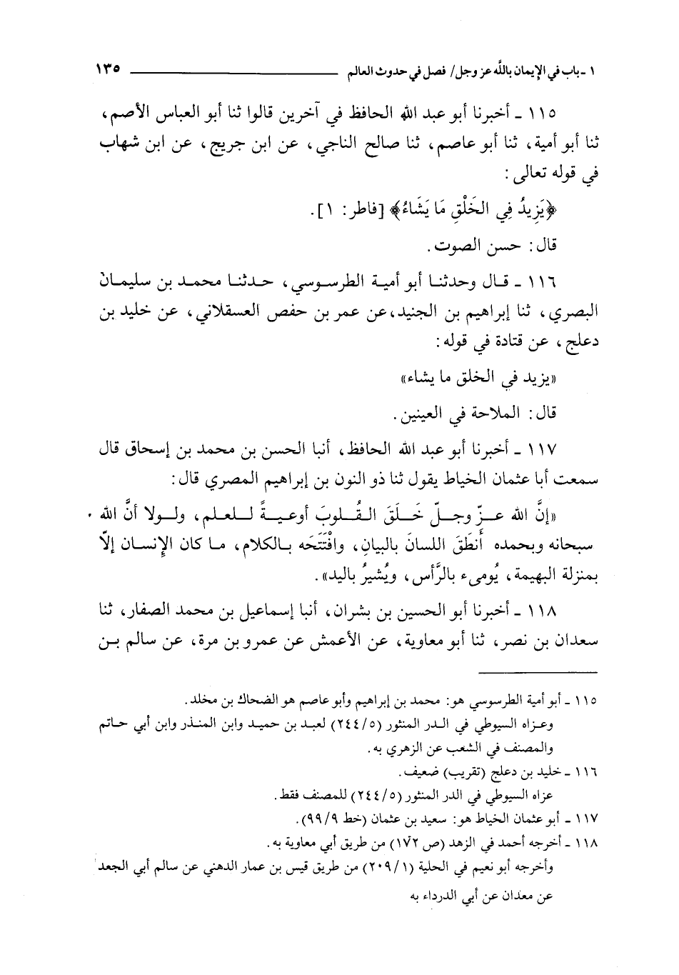 117 - أخبرنا أبو عبد الله الحافظ أنبا الحسن بن محمد بن إسحاق قال سمعت أبا عثمان الخياط يقول ثنا ذو النون بن إبراهيم المصري قال : إن لله عز و جل خلق القلوب أوعية للعلم و لولا أن الله سبحانه و بحمده أنطق اللسان بالبيان و افتتحه بالكلام ما كان الإنسان إلا بمنزلة البهيمة يومئ بالرأس و يشير باليد