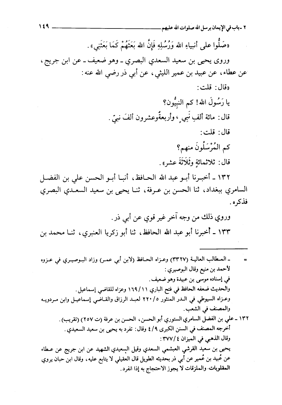 132 - أخبرنا أبو عبد الله الحافظ أنبأ أبو الحسن علي بن الفضل السامري ببغداد ثنا الحسن بن عرفة ثنا يحيى بن سعيد البصري : فذكره