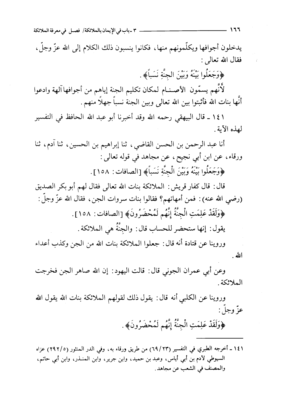 و عن أبي عمران الجوني قال : قالت اليهود : إن الله صاهر الجن فخرجت الملائكة
