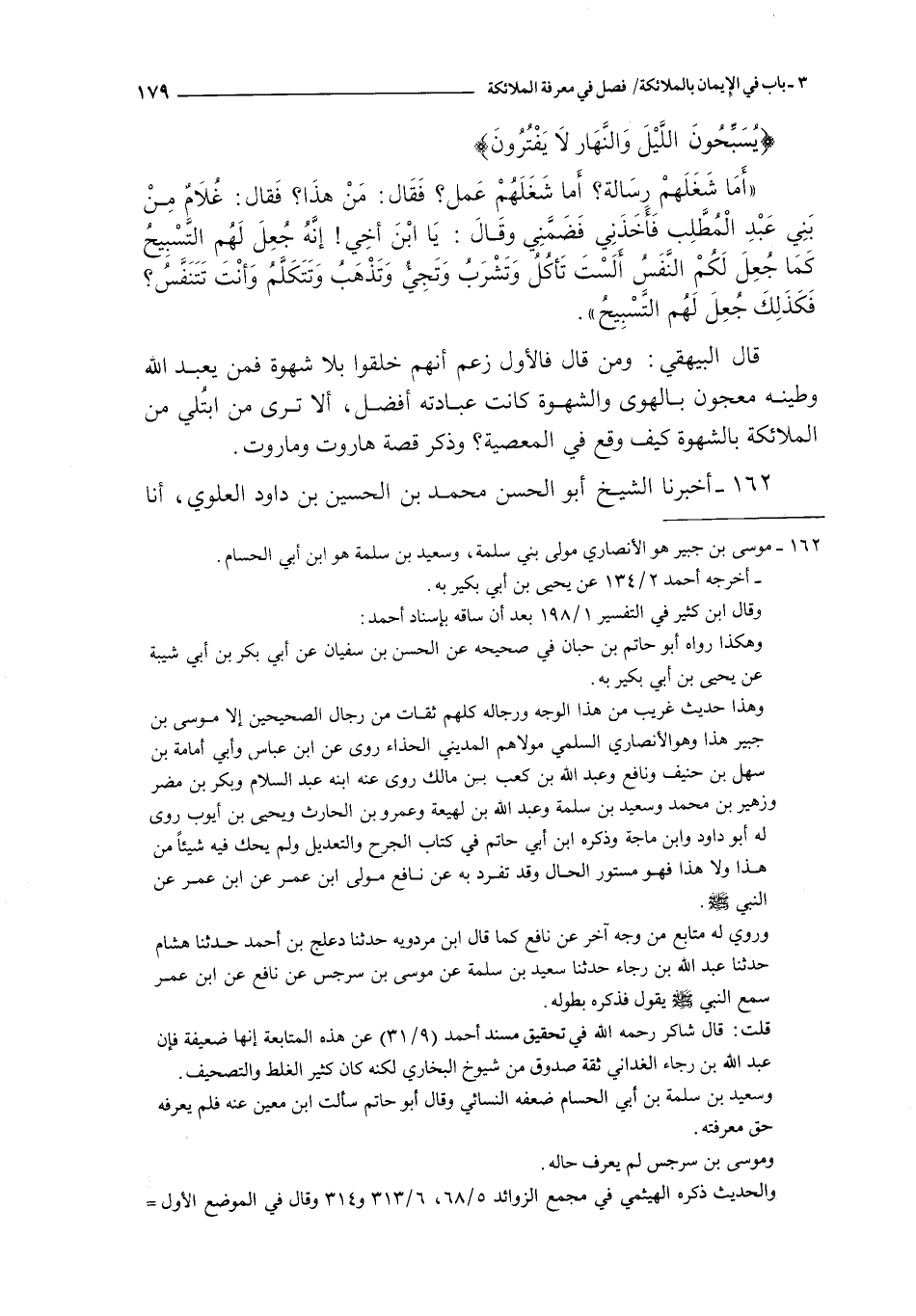 162 - أخبرنا الشيخ أبو الحسن محمد بن الحسين بن داود العلوي أنا أحمد بن محمد بن الحسن الحافظ ثنا العباس بن محمد الدوري و إبراهيم بن الحارث البغدادي قالا : ثنا يحيى بن بكير ثنا زهير بن محمد عن موسى بن جبير عن نافع مولى عبد الله بن عمر عن عبد الله بن عمر أنه : سمع رسول الله صلى الله عليه و سلم يقول : إن آدم عليه السلام لما أهبطه الله إلى الأرض قالت الملائكة أي رب أتجعل فيها من يفسد فيها و يسفك الدماء و نحن نسبح بحمدك و نقدس لك قال { إني أعلم ما لا تعلمون } قالوا ربنا نحن أطوع لك من بني آدم قال الله تعالى للملائكة : هلموا ملكين من الملائكة حتى نهبطهما إلى الأرض فننظر كيف تعلمون قالوا ربنا هاروت و ماروت فأهبطا إلى الأرض و مثلت لهما الزهرة امرأة من أحسن البشر فجاءتهما فسألاها نفسها فقالت : لا و الله حتى تكلما بهذه الكلمة في الإشراك قالا : لا و الله لا نشرك بالله أبدا فذهبت عنهم ثم رجعت بصبي تحمله فسألاها نفسها فقالت : لا و الله حتى تقتلا هذا الصبي فقالا : لا و الله لا نقتله فذهبت عنهما ثم رجعت بقدح خمر تحمله فسألاها نفسها فقالت : لا و الله حتى تشربا هذا الخمر فشربا فسكرا فوقعا عليها و قتلا الصبي فلما أفاقا قالت المرأة : و الله ما تركتما مما أبيتما علي إلا و قد فعلتماه حتى سكرتما فخيرا عند ذلك بين عذاب الدنيا و عذاب الآخرة فاختارا عذاب الدنيا
