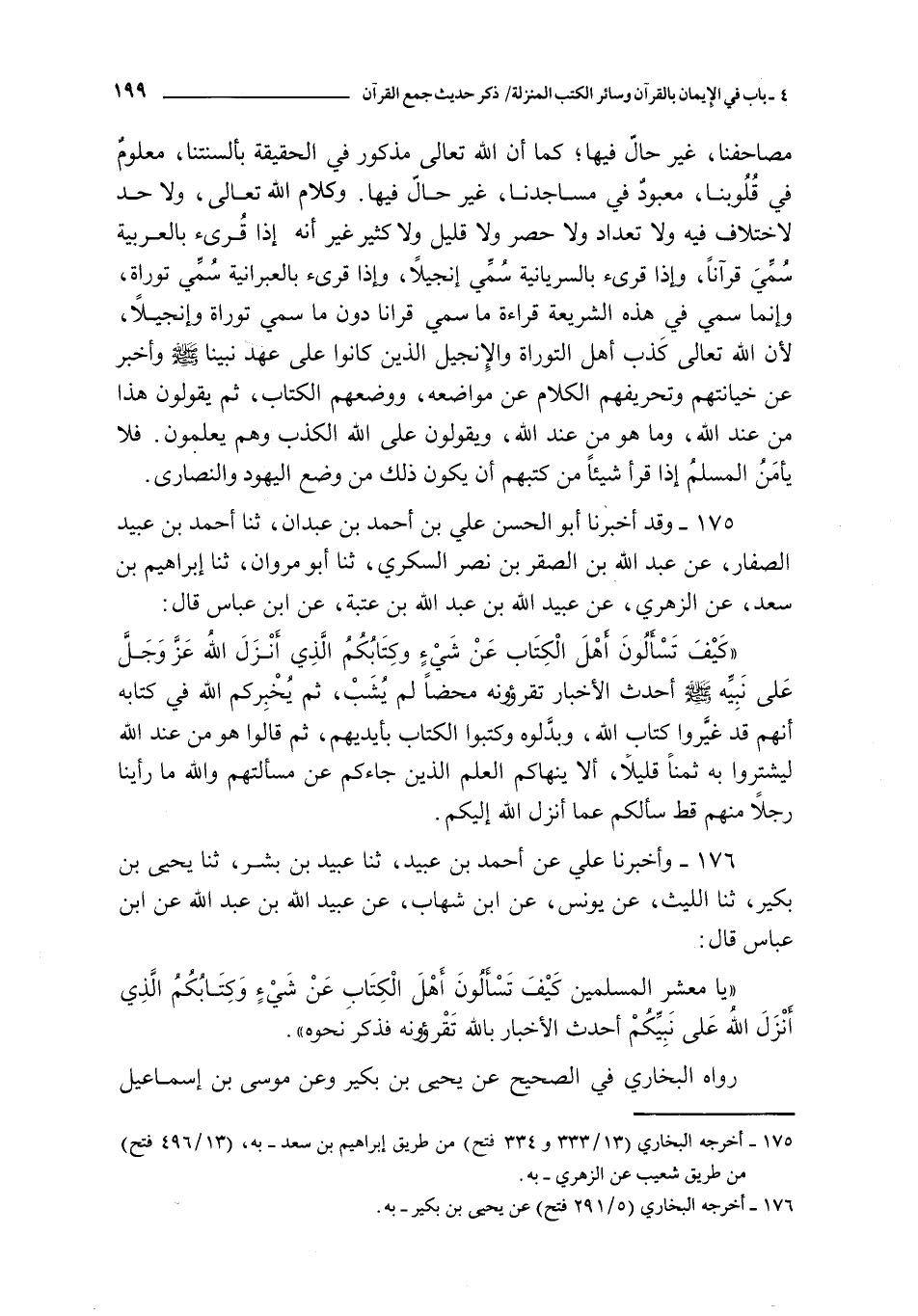 175 - و قد أخبرنا أبو الحسن علي بن أحمد بن عبدان ثنا أحمد بن عبيد الصفار عن عبد الله بن الصقر بن نصر السكري ثنا أبو مروان ثنا إبراهيم بن سعد عن الزهري عن عبيد الله بن عبد الله بن عتبة عن ابن عباس قال : كيف تسألون أهل الكتاب عن شيء و كتابكم الذي أنزل الله عز و جل على نبيه صلى الله عليه و سلم أحدث الأخبار تقرؤونه محضا لم يشب ثم يخبركم الله في كتابه أنهم قد غيروا كتاب الله و بدلوه و كتبوا الكتاب بأيديهم ثم قالوا هو من عند الله ليشتروا به ثمنا قليلا ألا ينهاكم العلم الذين جاءكم عن مسألتهم و الله ما رأينا رجلا منهم قط سألكم عما أنزل الله إليكم