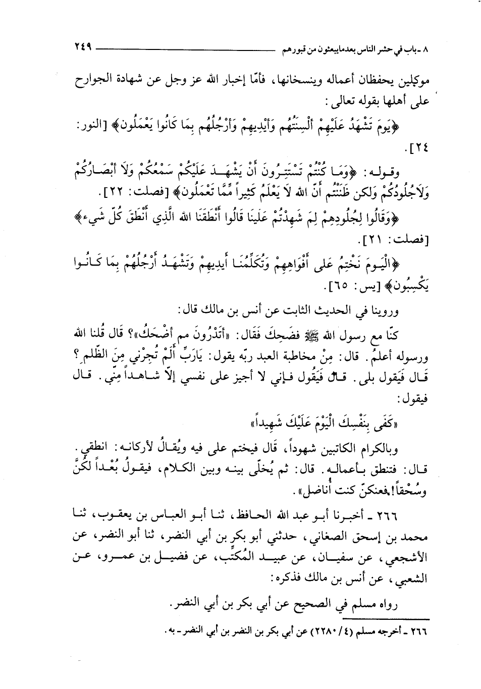 266 - أخبرنا أبو عبد الله الحافظ ثنا أبو العباس بن يعقوب ثنا محمد بن إسحاق الصغاني حدثني أبو بكر بن أبي النضر ثنا أبو النضر عن الأشجعي عن سفيان عن عبيد المكتب عن فضيل بن عمرو عن الشعبي عن أنس بن مالك : فذكره