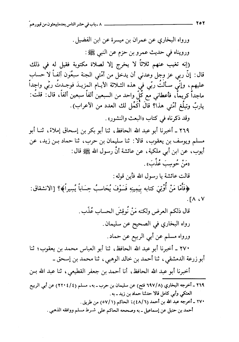 269 - أخبرنا أبو عبد الله الحافظ ثنا أبو بكر بن إسحاق إملاء ثنا أبو مسلم و يوسف بن يعقوب قالا : ثنا سليمان بن حرب ثنا حماد بن زيد عن أيوب عن ابن أبي ملكية عن عائشة : أن رسول الله صلى الله عليه و سلم قال :
