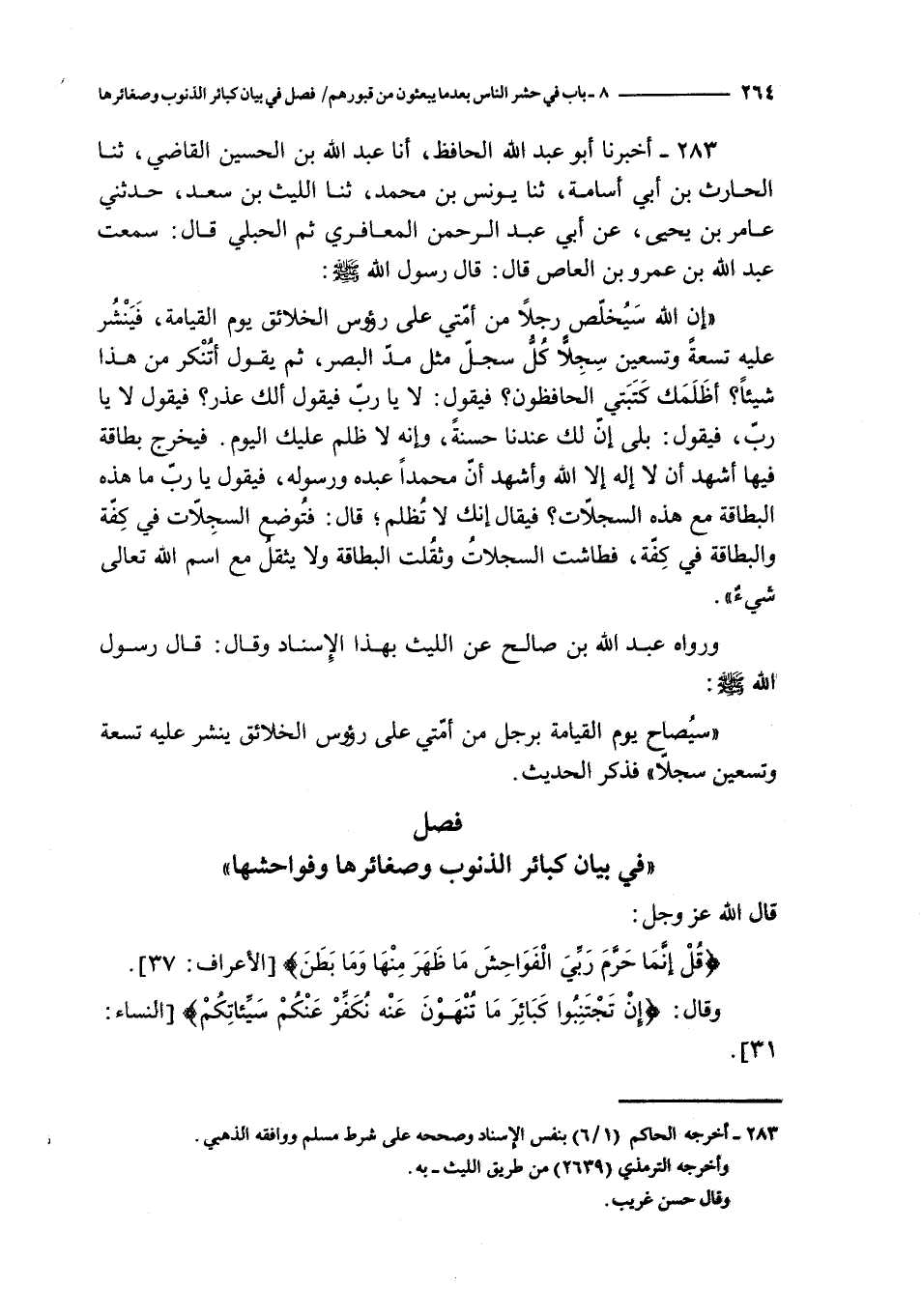 سيصاح يوم القيامة برجل من أمتي على رؤوس الخلائق ينشر عليه تسعة و تسعين سجلا فذكر الحديث