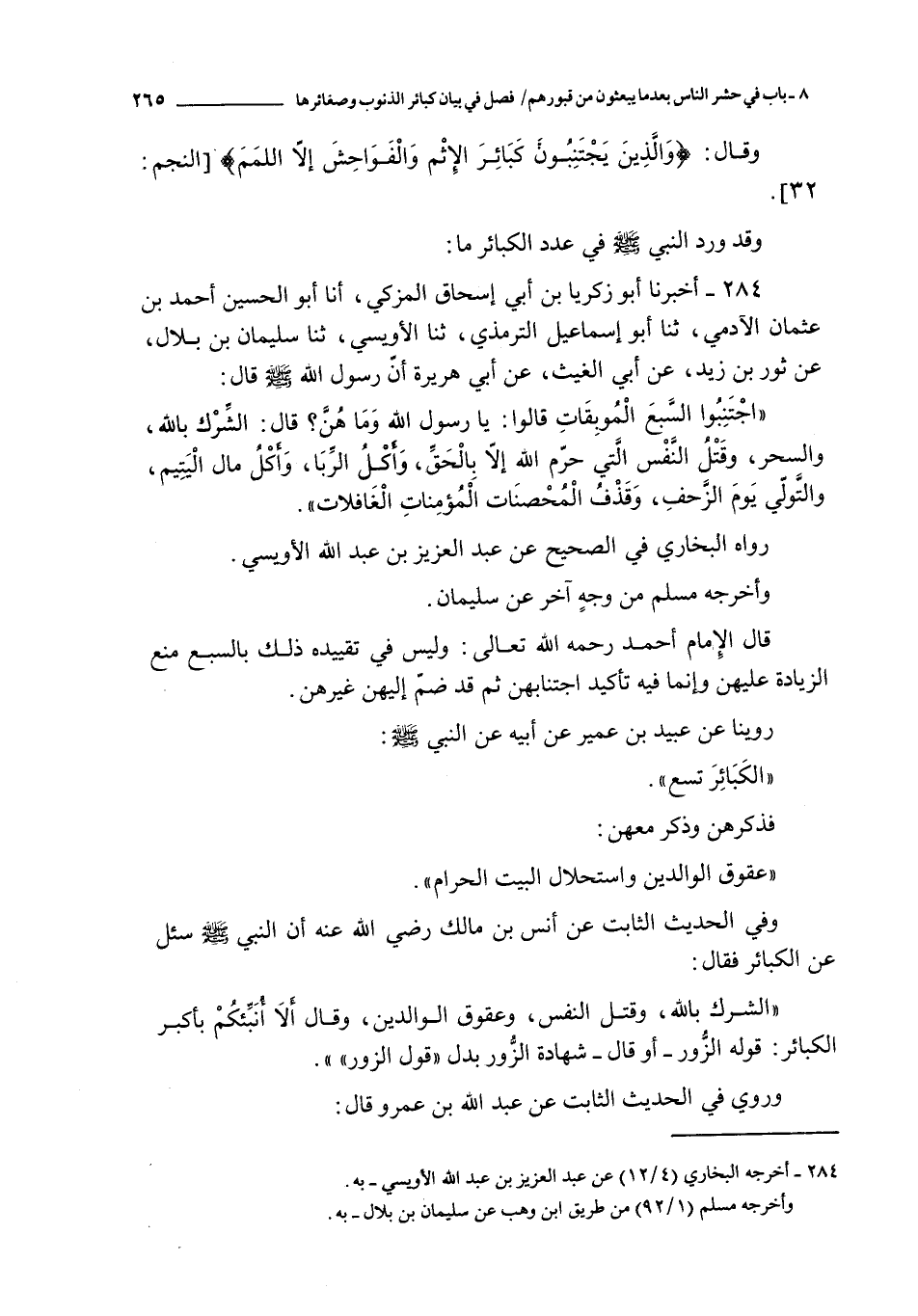 و في الحديث الثابت عن أنس بن مالك رضي الله عنه أن النبي صلى الله عليه و سلم سئل عن الكبائر فقال :