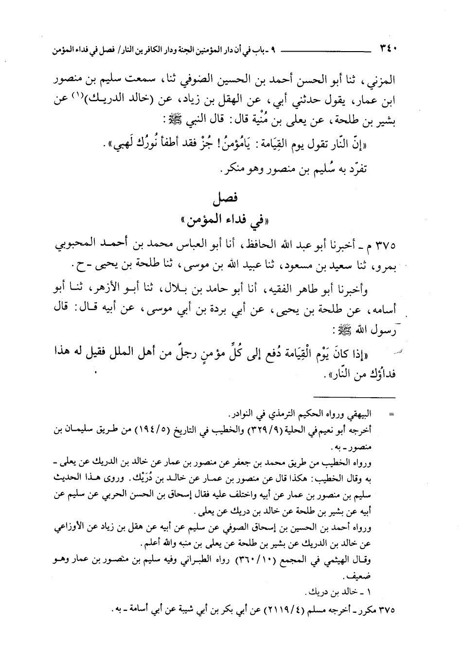 375 - أخبرنا أبو عبد الله الحافظ أنا أبو العباس محمد بن أحمد المحبوبي بمرو ثنا سعيد بن مسعود ثنا عبيد الله بن موسى ثنا طلحة بن يحيى ـ ح