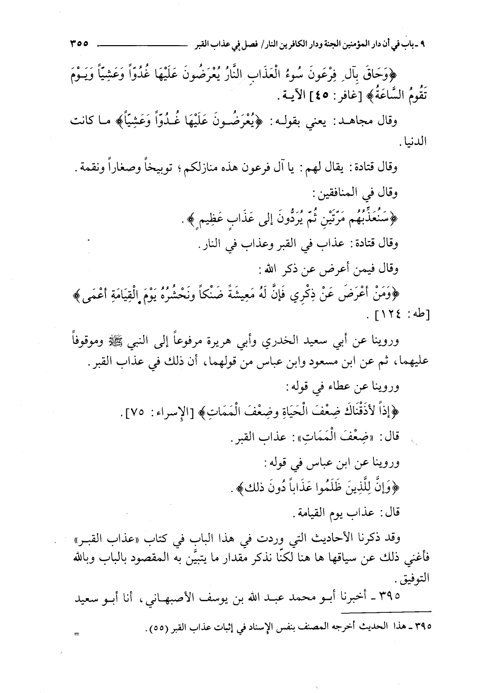 395 - أخبرنا أبو محمد عبد الله بن يوسف الأصبهاني أنا أبو سعيد أحمد بن محمد بن زياد البصري بمكة ثنا سعدان بن نصر ثنا أبو معاوية الضرير ثنا الأعمش عن المنهال بن عمرو عن زاذان أبي عمر عن البراء بن عازب قال : خرجنا مع رسول الله صلى الله عليه و سلم في جنازة رجل من الأنصار فانتهينا إلى القبر و لما يلحد قال : فجلس رسول الله صلى الله عليه و سلم و جلسنا حوله كان على رؤوسنا الطير و في يده عود ينكت به قال : فرفع رأسه و قال :