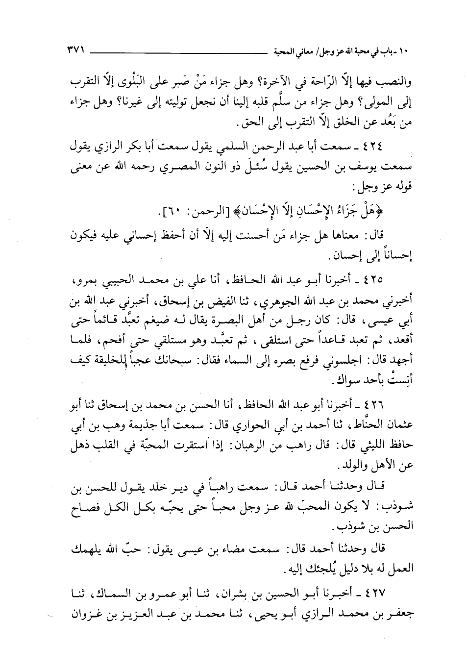 424 - سمعت أبا عبد الرحمن السلمي يقول سمعت أبا بكر الرازي يقول سمعت يوسف بن الحسين يقول : سئل ذو النون المصري رحمه الله عن معنى قوله عز و جل :