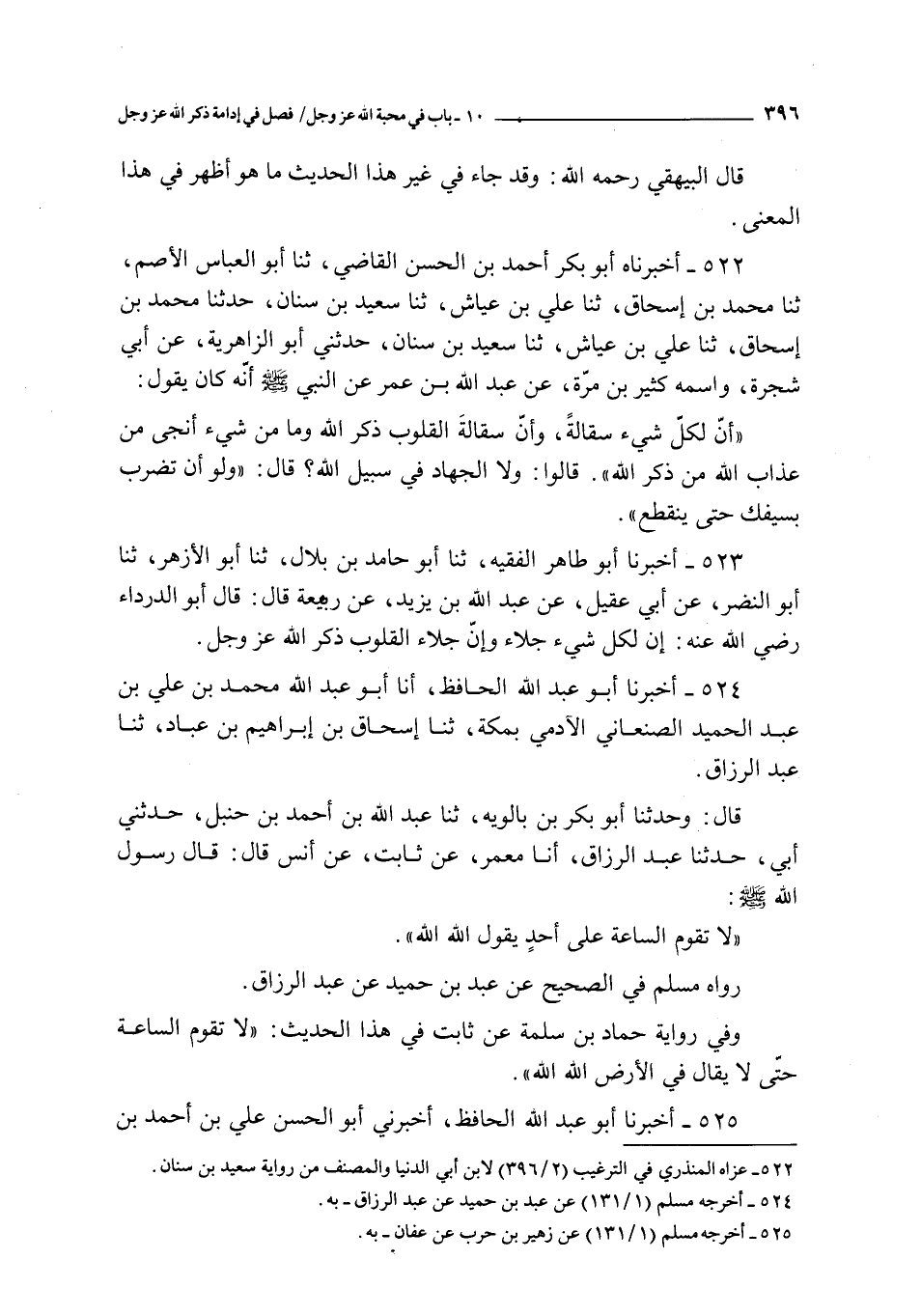 523 - أخبرنا أبو طاهر الفقيه ثنا أبو حامد بن بلال ثنا أبو الأزهر ثنا أبو النضر عن أبي عقيل عن عبد الله بن يزيد عن ربيعة قال : قال أبو الدرداء رضي الله عنه : إن لكل شيء جلاء و إن جلاء القلوب ذكر الله عز و جل