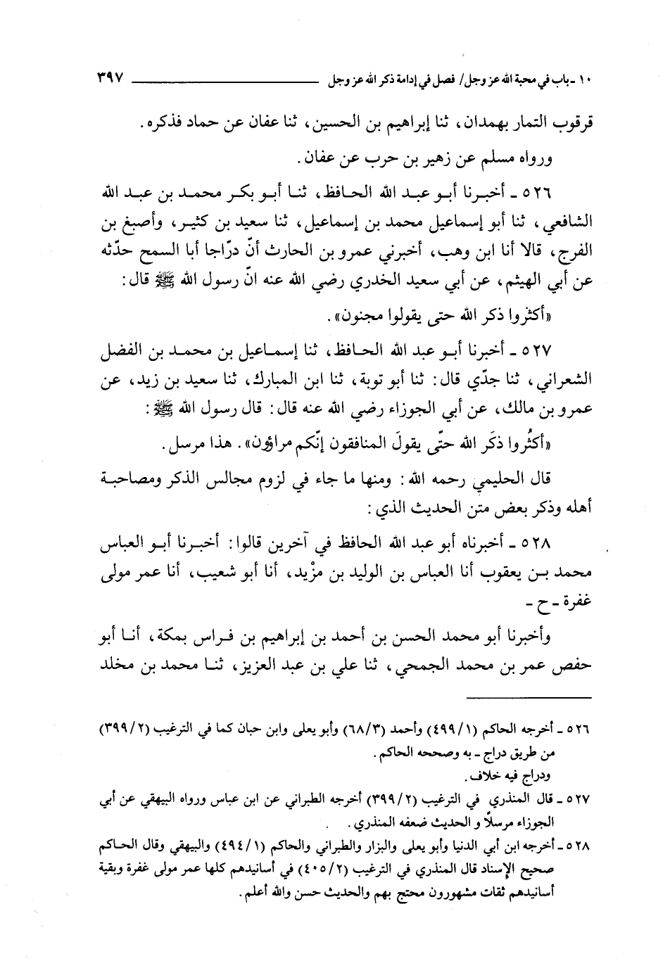 528 - أخبرنا أبو عبد الله الحافظ في آخرين قالوا : أخبرنا أبو العباس محمد بن يعقوب أنا العباس بن الوليد بن مزيد أنا أبو شعيب أنا عمر مولى غفرة ـ ح
