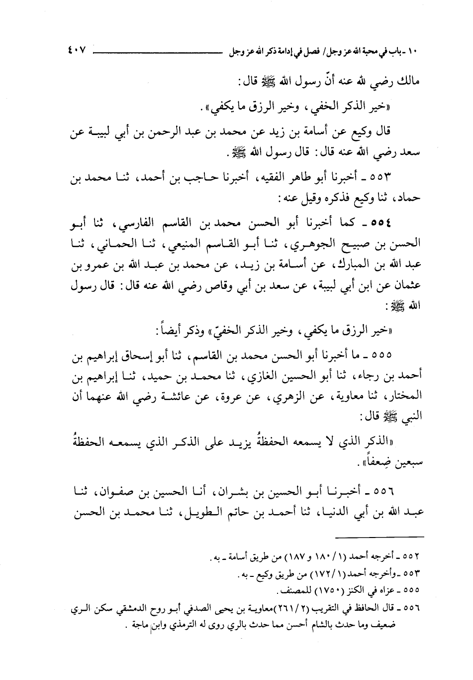 554 - كما أخبرنا أبو الحسن محمد بن القاسم الفارسي ثنا أبو الحسن بن صبيح الجوهري ثنا أبو القاسم المنيعي ثنا الحماني ثنا عبد الله بن المبارك عن أسامة بن زيد عن محمد بن عبد الله بن عمرو بن عثمان عن ابن أبي لبيبة عن سعد بن أبي وقاص رضي الله عنه قال : قال رسول الله صلى الله عليه و سلم :