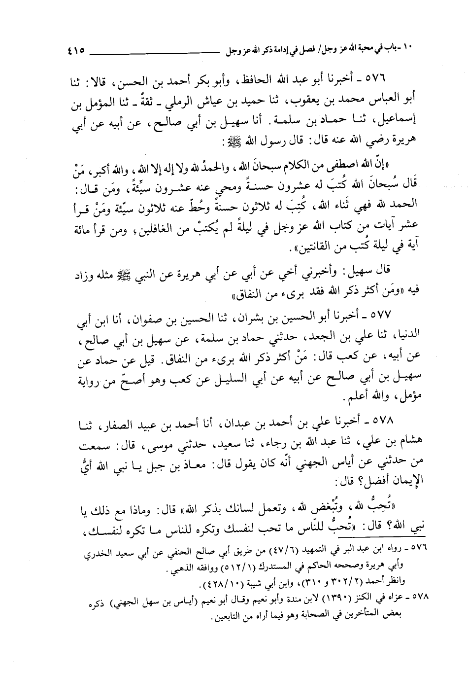 577 - أخبرنا أبو الحسين بن بشران ثنا الحسين بن صفوان أنا ابن أبي الدنيا ثنا علي بن الجعد حدثني حماد بن سلمة عن سهيل بن أبي صالح عن أبيه عن كعب قال : من أكثر ذكر الله برئ من النفاق قيل عن حماد عن سهيل بن أبي صالح عن أبيه عن أبي السليل عن كعب و هو أصح من رواية مؤمل و الله أعلم