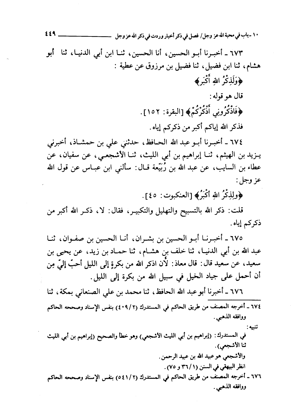 675 - أخبرنا أبو الحسين بن بشران أنا الحسين بن صفوان ثنا عبد الله بن أبي الدنيا ثنا خلف بن هشام ثنا حماد بن زيد عن يحيى بن سعيد عن سعيد قال : قال معاذ : لأن أذكر الله من بكرة إلى الليل أحب إلي من أن أحمل على جياد الخيل في سبيل الله من بكرة إلى الليل