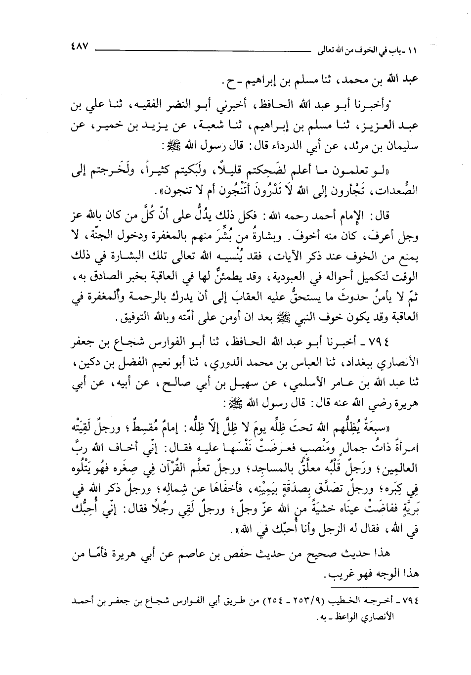 794 - أخبرنا أبو عبد الله الحافظ ثنا أبو الفوارس شجاع بن جعفر الأنصاري ببغداد ثنا العباس بن محمد الدوري ثنا أبو نعيم الفضل بن دكين ثنا عبد الله بن عامر الأسلمي عن سهيل بن أبي صالح عن أبيه عن أبي هريرة رضي الله عنه قال : قال رسول الله صلى الله عليه و سلم :