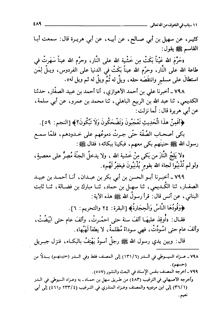 799 - أخبرنا أبو الحسن بن أبي بكر بن عبدان أنا أحمد بن عبيد الصفار ثنا الكديمي ثنا سهل بن حماد ثنا مبارك بن فضالة ثنا ثابت البناني عن أنس قال : قرأ رسول الله صلى الله عليه و سلم هذه الآية :