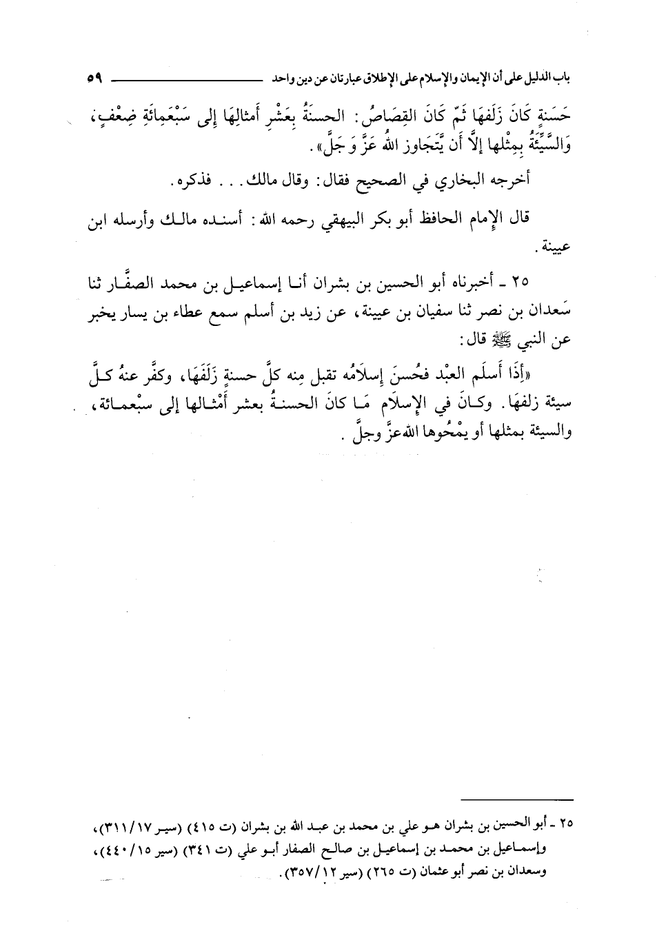 25 - أخبرناه أبو الحسين بن بشران أنا إسماعيل بن محمد الصفار ثنا سعدان بن نصر نا سفيان بن عيينة عن زيد بن أسلم سمع عطاء بن يسار يخبر : عن النبي صلى الله عليه و سلم قال :
