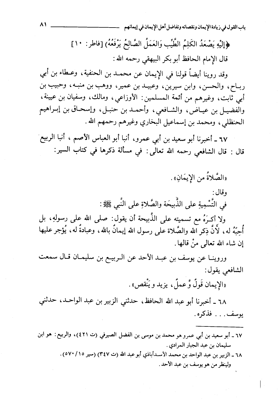 67 - أخبرنا أبو سعيد بن أبي عمرو أنبأ أبو العباس الأصم أنبأ الربيع قال : قال الشافعي رحمه الله تعالى : في مسأله ذكرها في كتاب السير : الصلاة من الإيمان