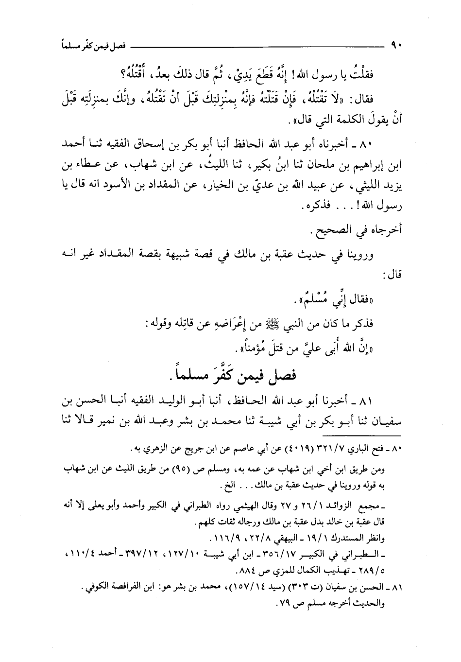 80 - أخبرنا أبو عبد الله الحافظ أنبأ أبو بكر بن إسحاق الفقيه نا أحمد بن إبراهيم بن ملحان ثنا ابن بكير ثنا الليث عن ابن شهاب عن عطاء بن يزيد الليثي عن عبيد الله بن عدي بن الخيار عن المقداد بن الأسود : أنه قال يا رسول الله ! فذكره