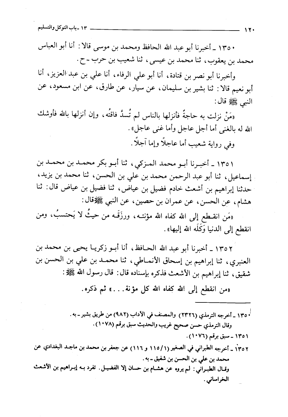 و أخبرنا أبو نصر بن قتادة أنا أبو علي الرفاء أنا علي بن عبد العزيز أنا أبو نعيم قالا : ثنا بشير بن سليمان عن سيار عن طارق عن ابن مسعود : عن النبي صلى الله عليه و سلم قال :