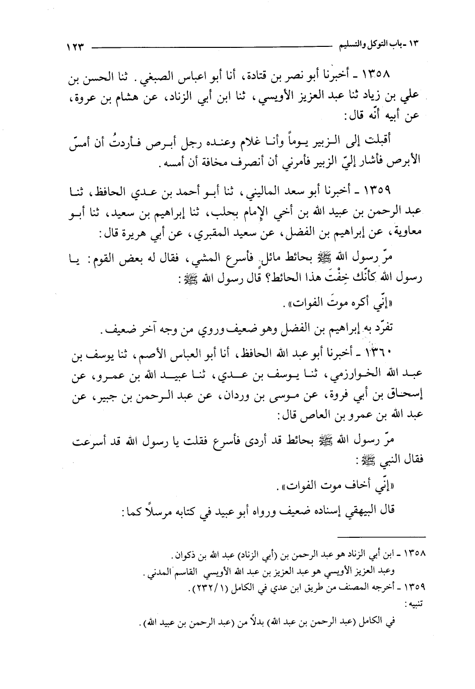 1359 - أخبرنا أبو سعد الماليني ثنا أبو أحمد بن عدي الحافظ ثنا عبد الرحمن بن عبيد الله بن أخي الإمام بحلب ثنا إبراهيم بن سعيد ثنا أبو معاوية عن إبراهيم بن الفضل عن سعيد المقبري عن أبي هريرة قال : مر رسول الله صلى الله عليه و سلم بحائط مائل فأسرع المشي فقال له بعض القوم : يا رسول الله كأنك خفت هذا الحائط ؟ قال رسول الله صلى الله عليه و سلم :
