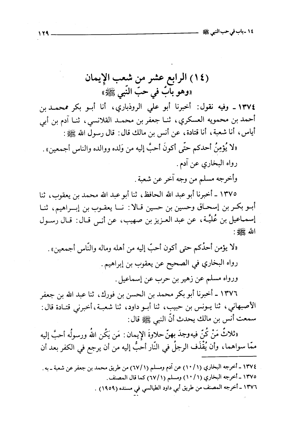 الرابع عشر من شعب الإيمان و هو باب في حب النبي صلى الله عليه و سلم