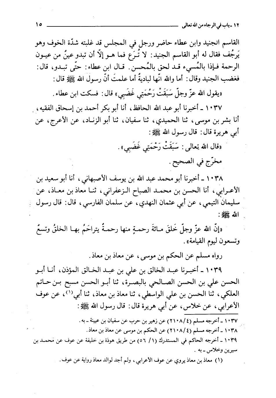 1039 - مكرر قال أيوب السختياني : إن رحمة قسمها في دار الدنيا و أصابني منها الإسلام و أني لأرجو من تسعة و تسعين رحمة ما هو أكثر من ذلك